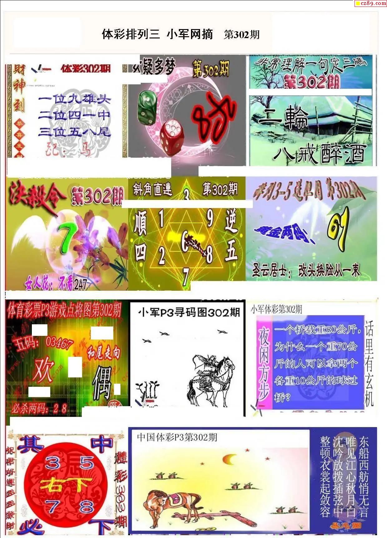 2025年302期牛彩网体彩P3画迷图谜汇总分享